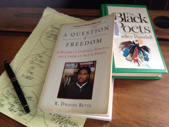 Later, Betts finds his own path as an artist after someone slips a copy of Dudley Randall’s anthology The Black Poets under his cell door. As he reads Randall’s book in solitary confinement, he discovers that his desperation and isolation enable him to see the words on the page as he has never seen them before. In his own words, “[s]olitary confinement gave me a gift I could have gotten nowhere else: the opportunity to start looking for the sense behind the words” (165). For Betts, The Black Poets serves both as a groundbreaking influence and a motif in A Question of Freedom. The first sentence of the memoir alludes to Etheridge Knight’s For Freckled-Faced Gerald”—a poem Betts first encounters in Randall’s anthology—paraphrasing its lines, “sixteen years hadn’t even done / a good job on his voice” (6-7). And lines from Knight’s poem also serve as the epigraph for the second part of the memoir.