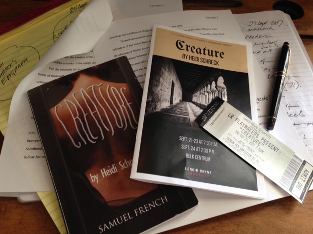 Creature. By Heidi Shrek. Dir. Liz Bokhoven. Perf. Liz Bokhoven, Chase Fowler, Benjamin Thomas-Reid, Callie Cope, Milissia Koncelik, Corey Smith. LR Playmakers, Lenoir-Rhyne U., Hickory, NC. 21 Sept. 2017.