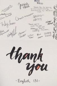 As a follow-up to the workshop, my students will post their résumés to their blogs for Monday’s class. Many thanks to Katie Wohlman and Rita Purvis and to students Faith Faller and Leah Dagenhardt for creating cards to express our thanks to Katie and Rita.