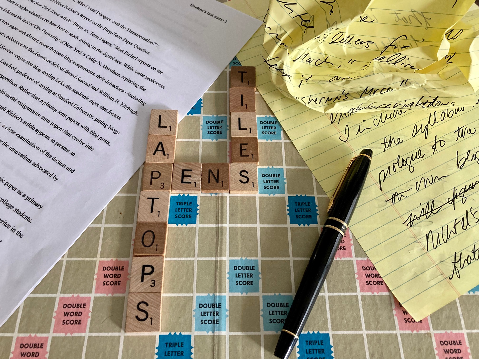 The process of crafting a study of “Blogs vs. Term Papers” prompted me to meditate on the similarities between analysis and Scrabble, another feature of the course. The more I examined Richtel’s words, the more details I noticed. Similarly, the more closely I study the words on a Scrabble board and the tiles on a rack, the more opportunities for word building become apparent to me. This semester, the processes of writing an analysis of “Blogs vs. Term Papers” and playing Scrabble have deepened my understanding of how those two activities cultivate the focus that leads to the discoveries intrinsic to learning.