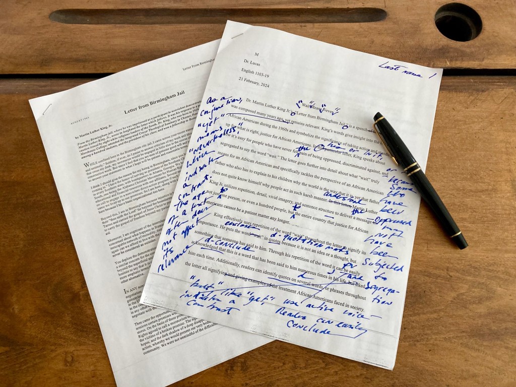 King, Martin Luther, Jr. “Letter from Birmingham Jail.” California State University, Chico. https://www.csuchico.edu/iege/_assets/documents/susi-letter-from-birmingham-jail.pdf.