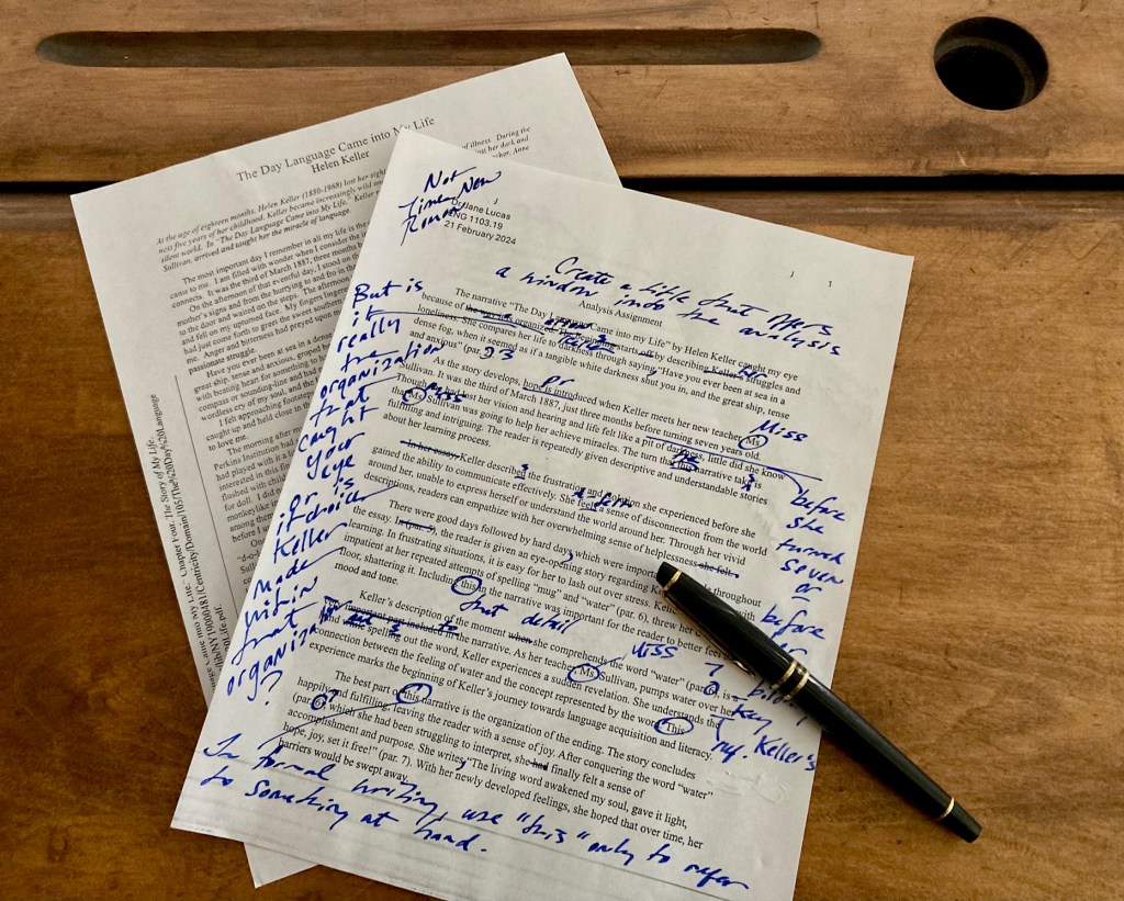 With pen or pencil in hand, read your copy of the student analysis of “The Day Language Came into My Life.” Write notes in the margin and on the text itself, and afterward compose a brief journal entry that addresses both the content and the form of the essay. (Remember that you are not required to complete this exercise until you return to campus after spring break.)
