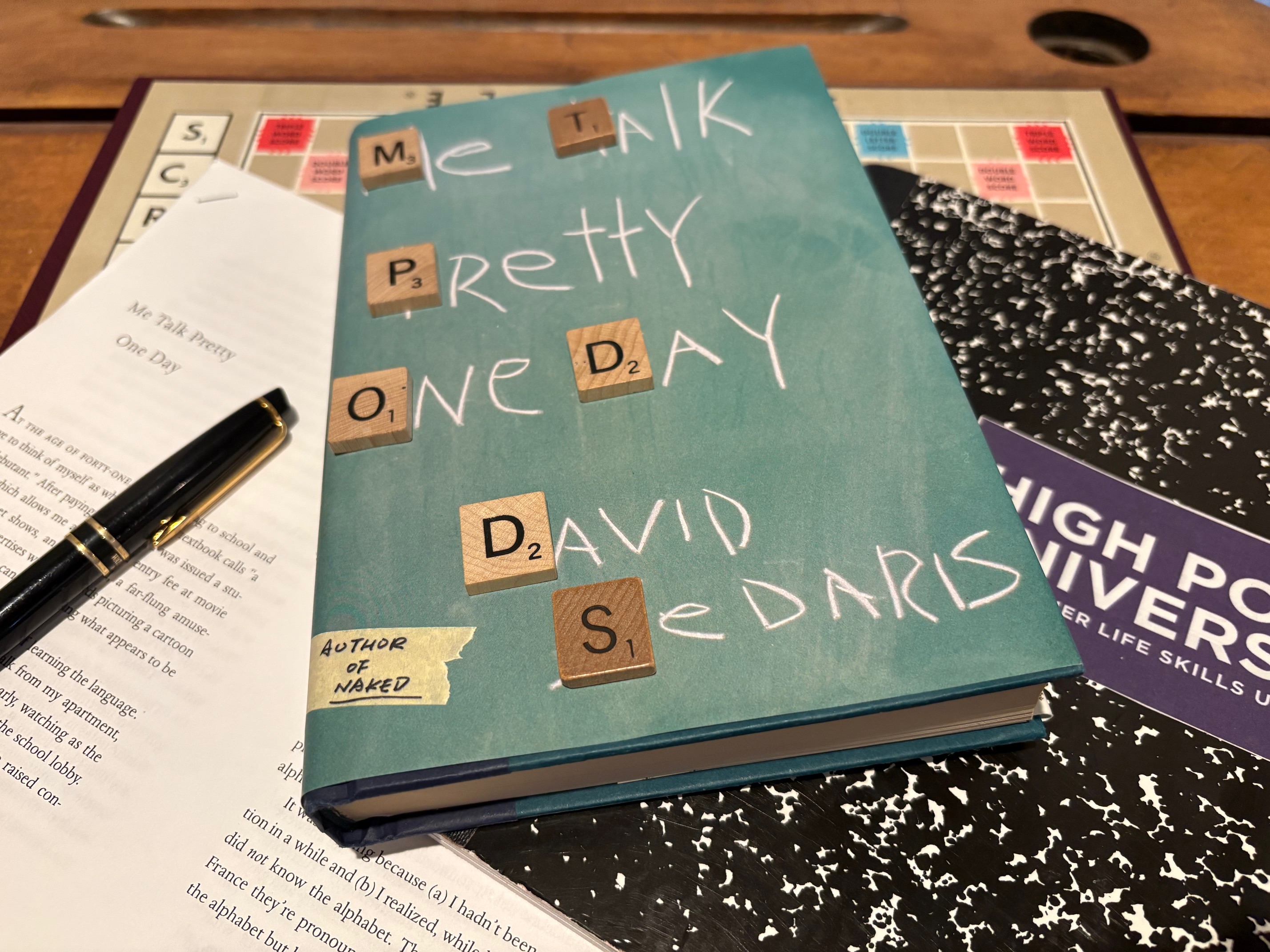 This morning in class, after your Scrabble debriefing, we will examine David Sedaris‘s essay “Me Talk Pretty One Day,” and you and two or three of your classmates will collaborate on an exercise that asks you to examine–and subsequently address in writing–these elements of his literacy narrative: