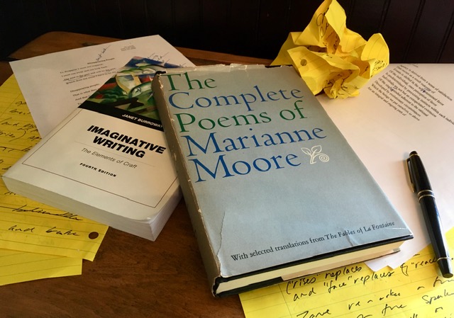 Reading your recommendations for revisions last week reminded me of poet Marianne Moore’s relentless revisions, including changes to one poem titled “Poetry,” which she tinkered with for five decades. Many of her readers were puzzled and frustrated when they opened The Complete Poems of Marianne Moore (1967) to find “Poetry” radically reduced to three lines. Gone from the poem were thirty-five lines, including this metaphor that speaks to many forms of art: “imaginary gardens with real toads in them” (line 32).