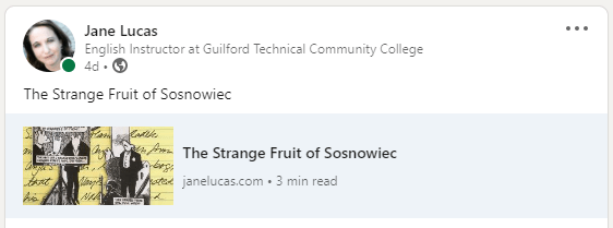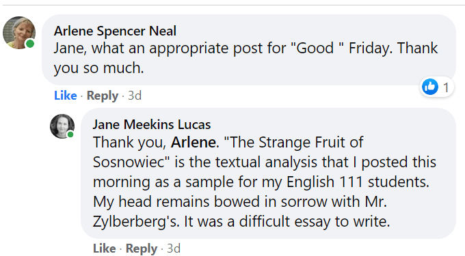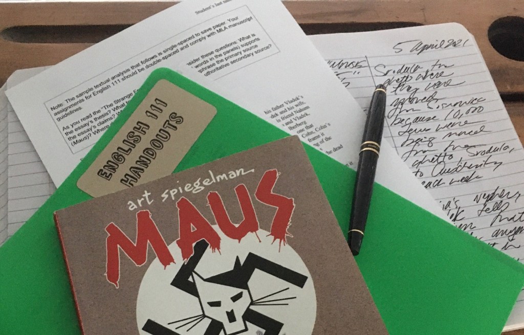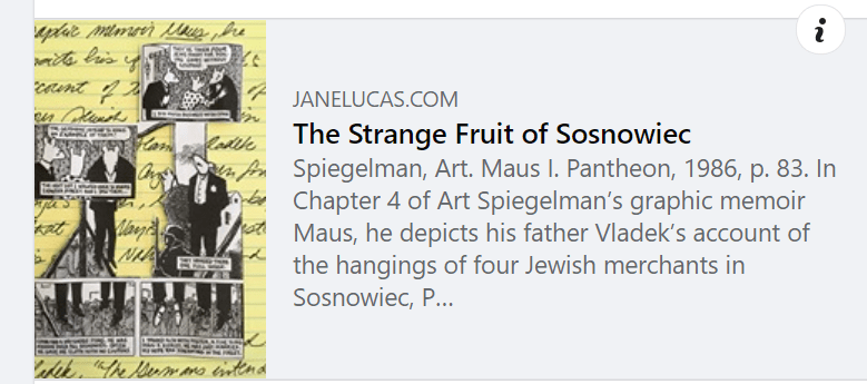 This morning in class, after your Scrabble debriefing, we will examine my model analysis, “The Strange Fruit of Sosnowiec,” included below. As you read it, note how I turn from summary to thesis in the first paragraph. Also note how the paragraphs that follow offer support for the thesis with concrete details from the comic’s panels.