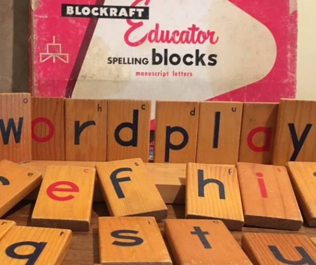 I never became an auction-goer, but I share my parents’ fascination with objects from the past. And I can trace the allure of artifacts back to those outings with them. Rather than standing and listening to an auction chant, I prefer the quiet pastime of browsing the shelves of antique shops and thrift stores. What appeals to me about such excursions is the possibility of the unexpected find: most recently a set of wooden letter blocks at